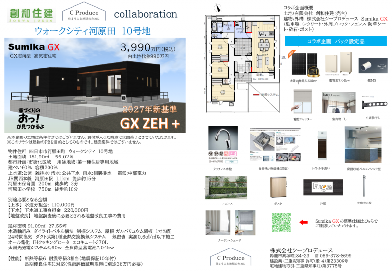 土地・建物・外構・豪華仕様設備をパッケージにした税込3990万円のコラボ企画です。