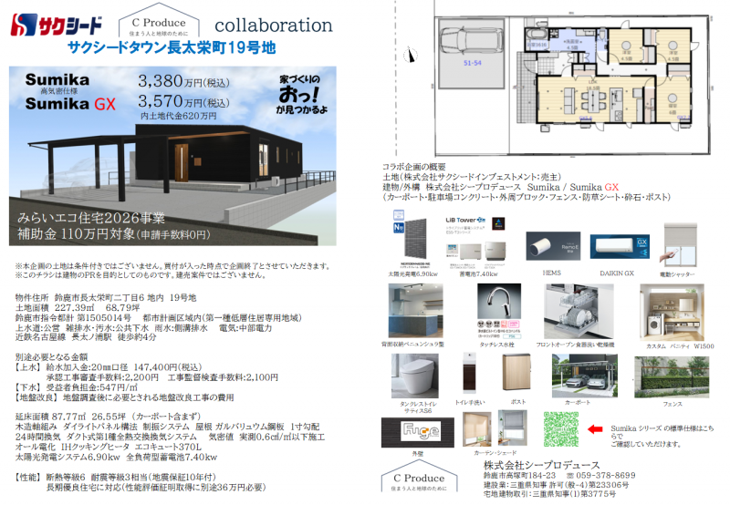 株式会社 三商様の分譲地、サンビレッジ能褒野2号地でのコラボ企画でのご提案です。