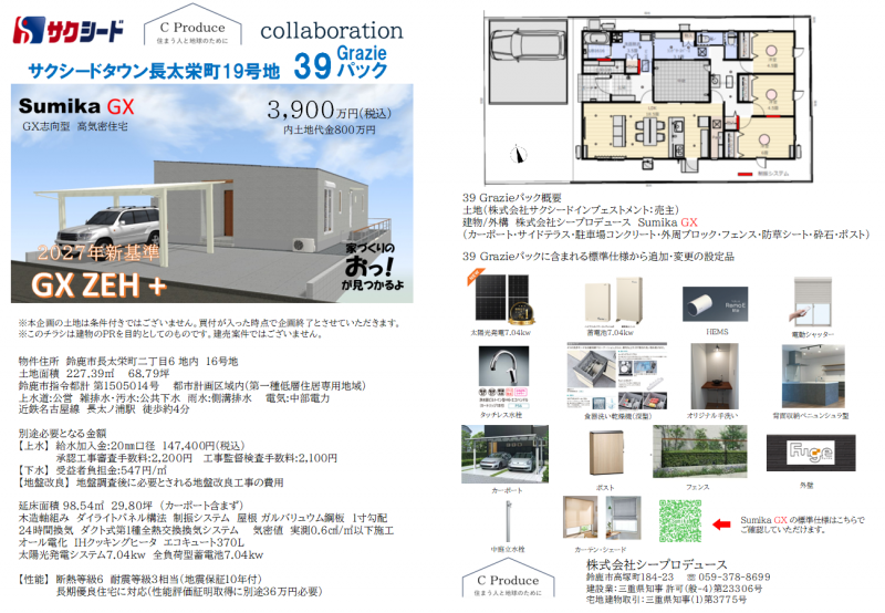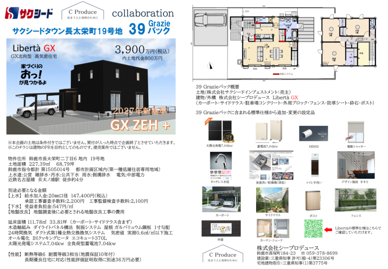 超お得な『39 Grazie パック』をコラボ企画として2区画 税込3,900万円にてご提案させていただきます。