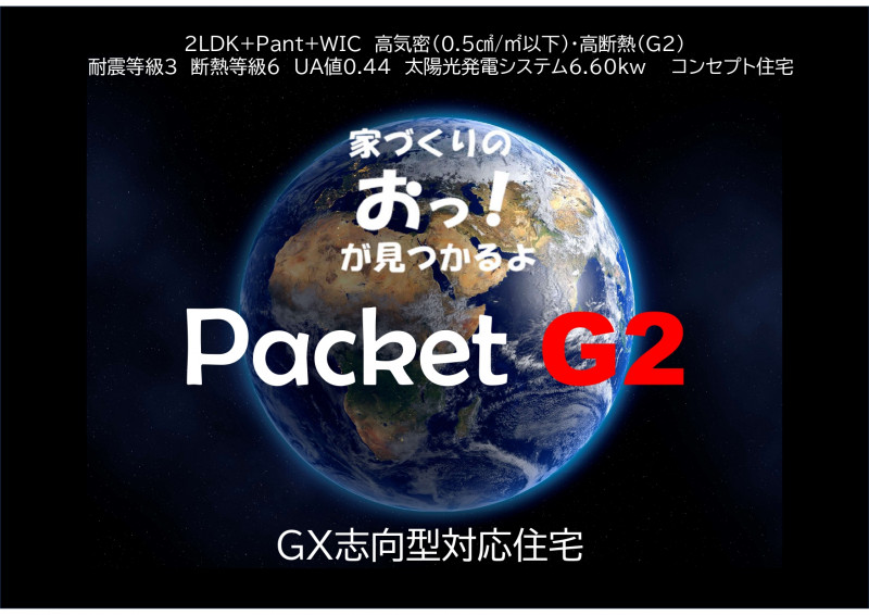 Packet G2 Type of Residence トップ> 住宅タイプ> Packet G2 HEAT20 G2グレード 平屋2LDKの高気密コンセプト住宅太陽光発電システムを標準搭載した「光熱費0円住宅」 一覧へ戻る